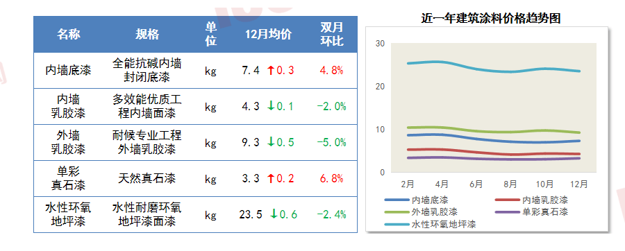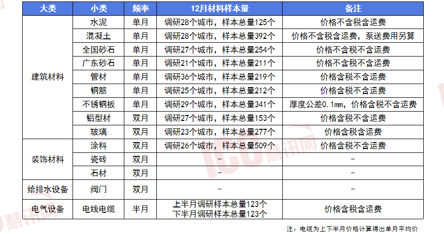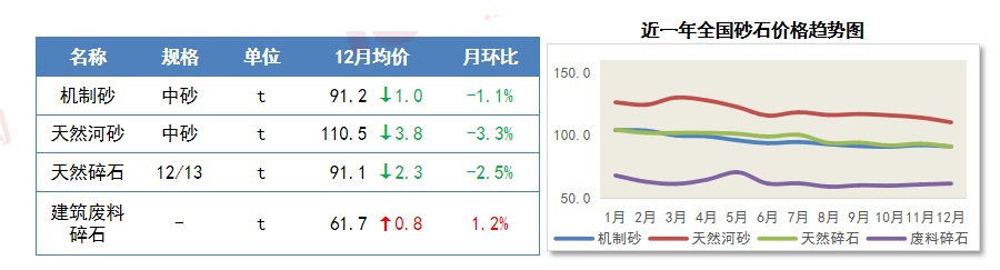 为慧讯网客户带来更为曲不雅的材料价钱变化趋向。总体上,天然碎石全省均价环比下跌1.9%,不锈钢价钱岁暮趋弱收尾;11-12月内墙底漆、单彩线%,但原料砂石、水泥支持乏力,